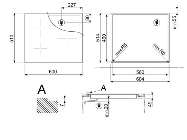 Глубина варочной панели представляет собой расстояние от ближайшей к пользователю ее точки до самой дальней. В первую очередь глубина определяется соответствующими размерами столешницы, куда варочная панель будет встроена, и уже во вторую — количеством и расположением конфорок.