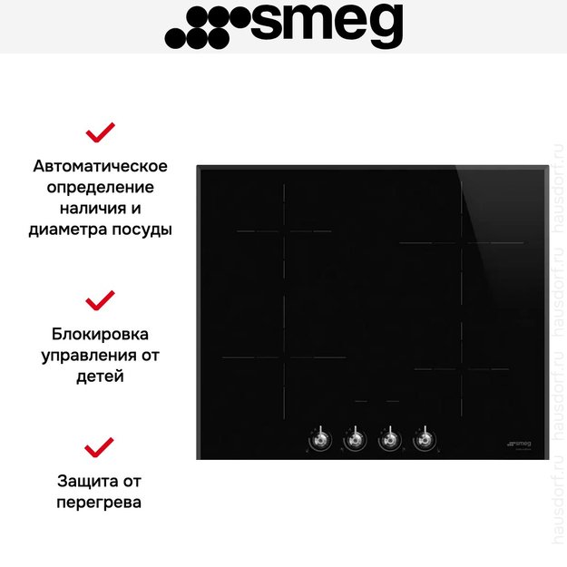 Индукционная варочная панель Smeg SI364BM выполнена в классическом черном цвете. Модель в таком оформлении сможет стать прекрасным дополнением вашего кухонного гарнитура. Система безопасности полностью блокирует всю панель управления, что позволяет избежать нежелательного сбоя настроек и случайного включения прибора. С помощью функции быстрого старта добиться высокого уровня нагрева можно за несколько секунд. Режим BOOSTER ускоряет процесс приготовления и увеличивает мощность разогрева.