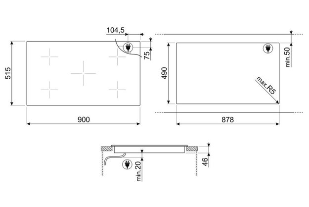 Электрические и индукционные варочные панели из стали, эмали и стеклокерамики имеют толщину от 4 до 5,5 cм, но выглядят более низкими, так как на них отсутствуют выступающие горелки. Как правило, подробные требования к толщине столешницы для установки приводятся в руководстве пользователя.