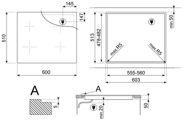 Глубина варочной панели представляет собой расстояние от ближайшей к пользователю ее точки до самой дальней. В первую очередь глубина определяется соответствующими размерами столешницы, куда варочная панель будет встроена, и уже во вторую — количеством и расположением конфорок.