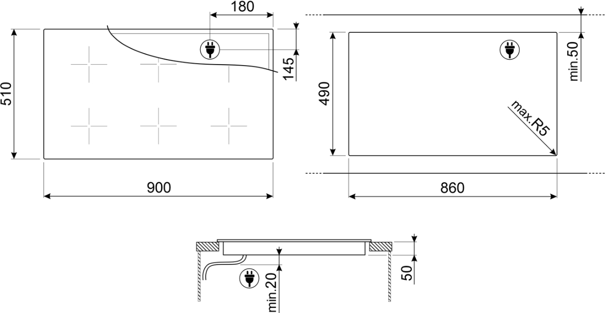 Электрические и индукционные варочные панели из стали, эмали и стеклокерамики имеют толщину от 4 до 5,5 cм, но выглядят более низкими, так как на них отсутствуют выступающие горелки. Как правило, подробные требования к толщине столешницы для установки приводятся в руководстве пользователя.