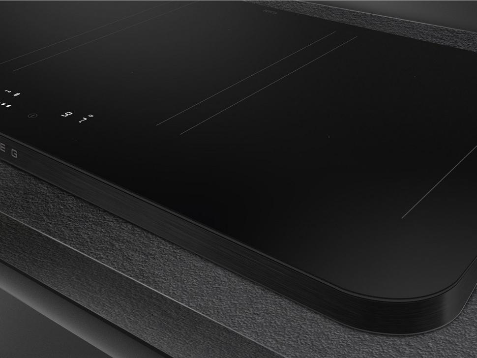 Хорошей альтернативой рамке является металлический профиль, который обычно устанавливается только спереди или сбоку. Он также не позволяет жидкости стекать на столешницу, но не «съедает» полезную площадь. Что касается варочных панелей без рамки, неизменной популярностью пользуются модели со скошенным краем. Такая обработка называется фацетной — внешняя сторона панели имеет огранку под углом 45 градусов. Такая панель очень легко чистится и эффектно выглядит, а современные методы огранки защищают края от сколов.