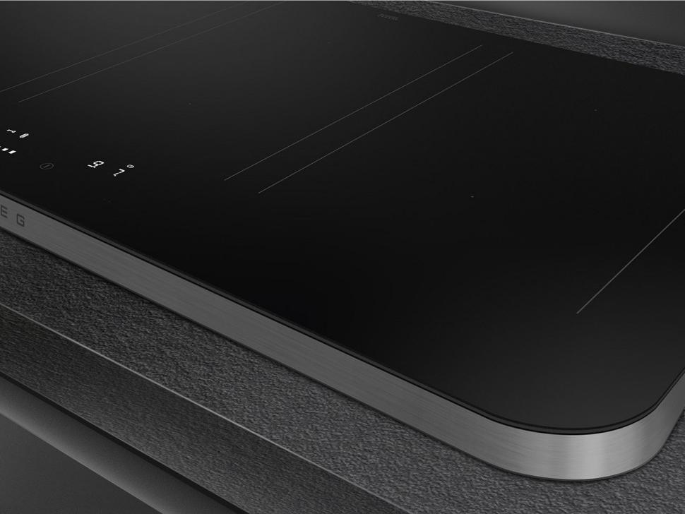 Хорошей альтернативой рамке является металлический профиль, который обычно устанавливается только спереди или сбоку. Он также не позволяет жидкости стекать на столешницу, но не «съедает» полезную площадь. Что касается варочных панелей без рамки, неизменной популярностью пользуются модели со скошенным краем. Такая обработка называется фацетной — внешняя сторона панели имеет огранку под углом 45 градусов. Такая панель очень легко чистится и эффектно выглядит, а современные методы огранки защищают края от сколов.