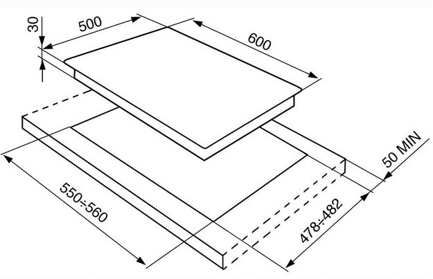 Глубина варочной панели представляет собой расстояние от ближайшей к пользователю ее точки до самой дальней. В первую очередь глубина определяется соответствующими размерами столешницы, куда варочная панель будет встроена, и уже во вторую — количеством и расположением конфорок.