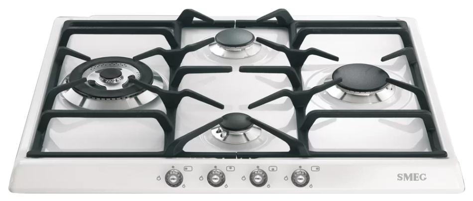 Smeg SR764BS — белая варочная поверхность из серии Cortina. Модель дополнена посудными решетками из чугуна и фурнитурой цвета состаренного серебра. Отличается характерным для серии Cortina сочетанием светлой поверхности и массивных элементов из кованого железа. Эта классическая независимая газовая панель с расположением конфорок в виде ромба имеет стандартную ширину 60 см и подойдет для установки в кухне произвольной площади. Поверхность из эмалированной нержавеющей стали не повреждается и не желтеет со временем.
