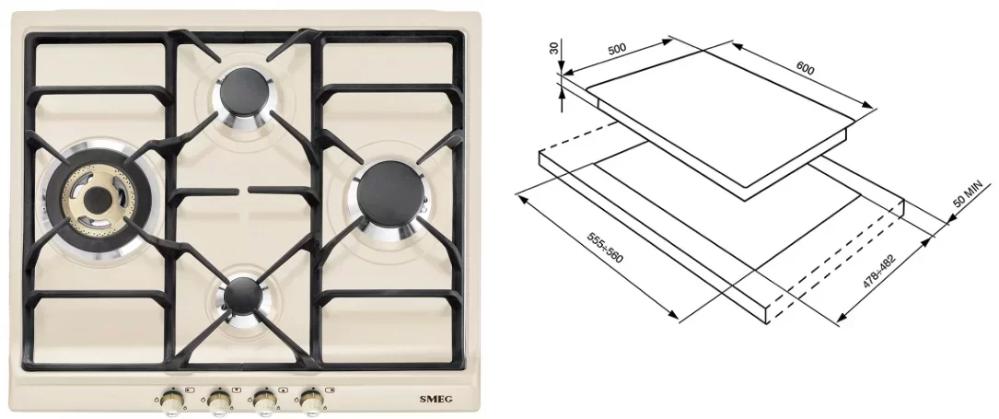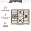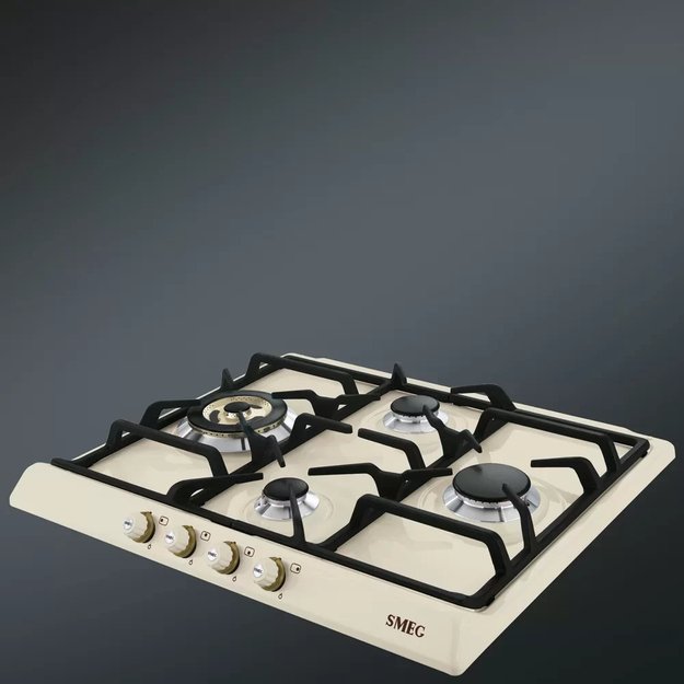 Smeg SR764PO — газовая варочная поверхность с эмалированной панелью конфорок кремового цвета. Модель дополнена чугунными решетками для надежного удержания посуды. Автоматический электроподжиг обеспечивает удобство при активации горелок. Система защиты от утечек гарантирует безопасность при эксплуатации устройства. Принцип работы основывается на блокировке подачи газа при обнаружении отсутствия пламени у работающей конфорки. Система срабатывает через несколько секунд, тем самым исключается риск возможной утечки. Это особенно важно при наличии сквозняков.