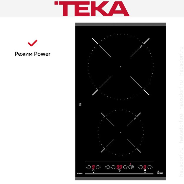 Teka IR 3200 — индукционная варочная панель шириной 30 см. Модель оборудована двумя разноразмерными зонами нагрева с функциями определения наличия посуды и повышения мощности. Для контроля времени приготовления предусмотрен электронный таймер. Блокировка от случайного нажатия гарантирует безопасную эксплуатацию прибора.