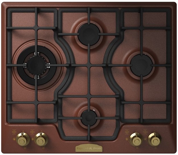 Zigmund Shtain GN 248.61 M — независимая варочная панель медного цвета. Модель оборудована четырьмя газовыми конфорками, активация которых осуществляется по системе автоматического электроподжига. Технология защиты от утечек исключает возможность возникновения взрыво- и пожароопасных ситуаций.