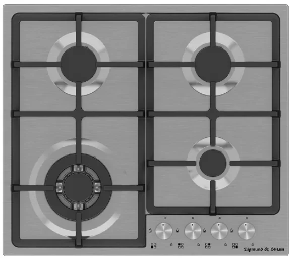 Zigmund Shtain GN 88.61 S — четырехконфорочная варочная панель с газ-контролем и электроподжигом. Рабочая поверхность модели изготовлена из прочной и простой в уходе нержавеющей стали. Для надежного удержания посуды предусмотрены чугунные решетки.