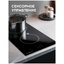 Цвет — черный. Благодаря отсутствию рамки она отлично впишется в интерьер и не займет лишнее место на столешнице, которое можно использовать для работы. Материал самой поверхности: стеклокерамика. Управление этой моделью слайдерное. Для переключения уровней нагрева, выбора функций используются следующие переключатели: сенсорные.