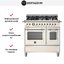 Устройства с тремя духовками также имеют один основной и две дополнительных шкафа разного объема: например, плиты Bertazzoni оснащены большой духовкой объемом 69 литров, средней объемом 54 литра и малой объемом 24 литра. Духовки располагаются в два ряда: две меньшие духовки в одном ряду, большая и ящик для посуды в другом.