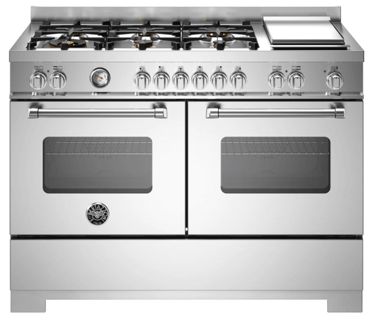 Устройства с тремя духовками также имеют один основной и две дополнительных шкафа разного объема: например, плиты Bertazzoni оснащены большой духовкой объемом 69 литров, средней объемом 54 литра и малой объемом 24 литра. Духовки располагаются в два ряда: две меньшие духовки в одном ряду, большая и ящик для посуды в другом.