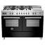 Варочный центр Bertazzoni PRO1206GMFEDNET черного цвета относится к серии Professional. Это отдельно стоящая плита шириной 120 см с газовой варочной поверхностью, двумя большими электрическими духовками одинакового размера и ящиком для посуды. На варочной панели из нержавеющей стали размещаются шесть конфорок, в числе которых мощная конфорка WOK с двумя рядами пламени, а также стальная поверхность теппан-яки для обжаривания мяса и овощей без посуды. Духовки объемом по 69 литров позволяют готовить при помощи традиционного нагрева, электрогриля, конвекции, комби-режимов. Для удобного извлечения противней предусмотрены телескопические направляющие. Для установки параметров приготовления служит стальная электронно-механическая панель управления с большим дисплеем и оригинальными поворотными переключателями.