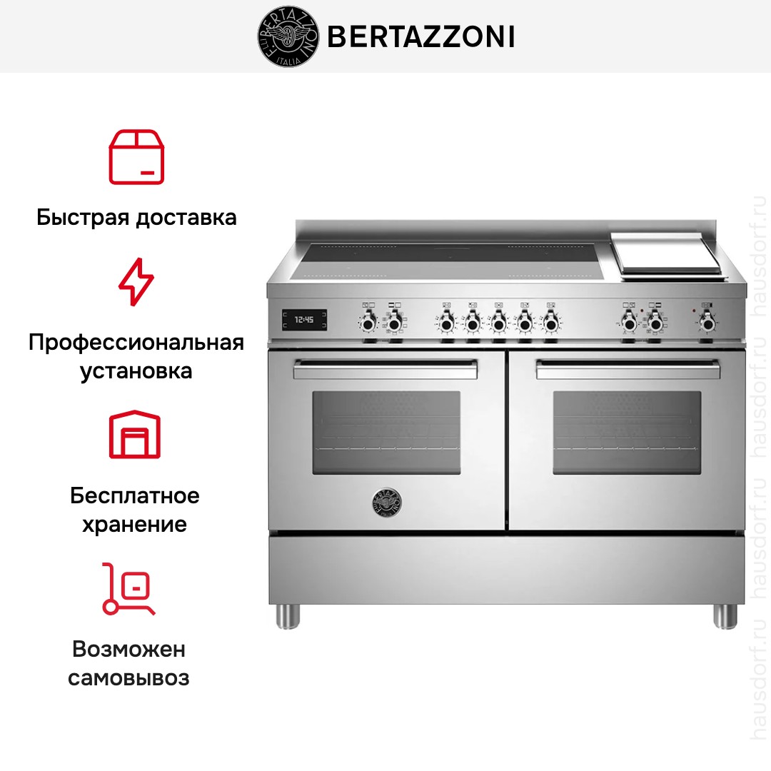Варочный центр Bertazzoni PRO125I2EXT — это воплощение высочайшего уровня кулинарного оснащения, сочетающее мощность профессиональной техники с изысканной эстетикой итальянского дизайна. Полностью электрическая модель объединяет две независимые духовки и индукционную варочную панель с пятью зонами нагрева, обеспечивая максимальную гибкость и контроль при приготовлении самых разнообразных блюд.