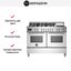 Устройства с тремя духовками также имеют один основной и две дополнительных шкафа разного объема: например, плиты Bertazzoni оснащены большой духовкой объемом 69 литров, средней объемом 54 литра и малой объемом 24 литра. Духовки располагаются в два ряда: две меньшие духовки в одном ряду, большая и ящик для посуды в другом.