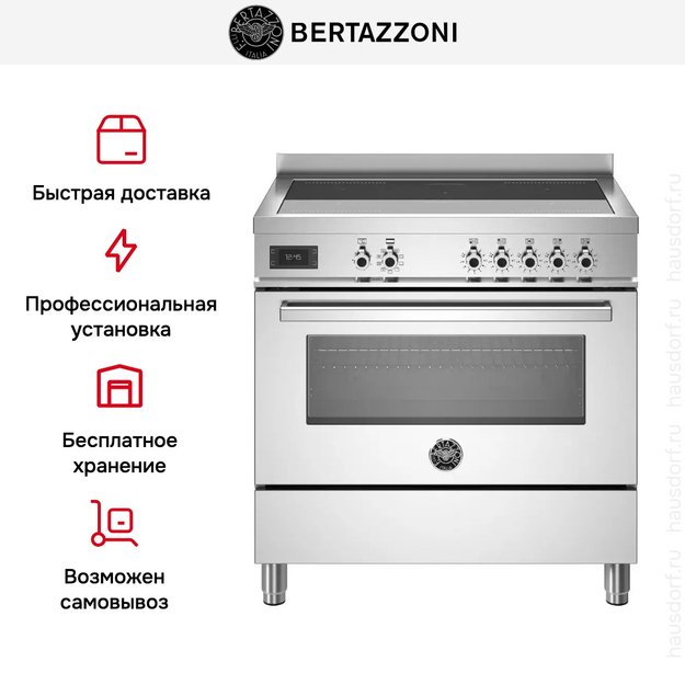 Электрическая плита Bertazzoni PROCH94I1EXT — отличный выбор как для квартиры, так и для частного дома. Цвет корпуса нержавеющая сталь, он гармонично сочетается с мебелью и техникой похожих оттенков, а также может интересно выглядеть на контрасте с ними. Для управления используется удобная и понятная электронная система. Благодаря ей выбирать режимы приготовления и настраивать параметры температуры очень просто. Основная информация о процессе отображается на дисплее. Переключатели не только выполняют техническую функцию, но и поддерживают общий дизайн; тип элементов: сенсорные + поворотные.