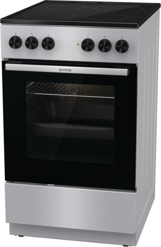 Электрическая плита Gorenje GEC5A11SG — отличный выбор как для квартиры, так и для частного дома. Цвет корпуса серый, он гармонично сочетается с мебелью и техникой похожих оттенков, а также может интересно выглядеть на контрасте с ними. Для управления используется удобная и понятная механическая система. Благодаря ей выбирать режимы приготовления и настраивать параметры температуры очень просто. Переключатели не только выполняют техническую функцию, но и поддерживают общий дизайн; тип элементов: поворотные.
