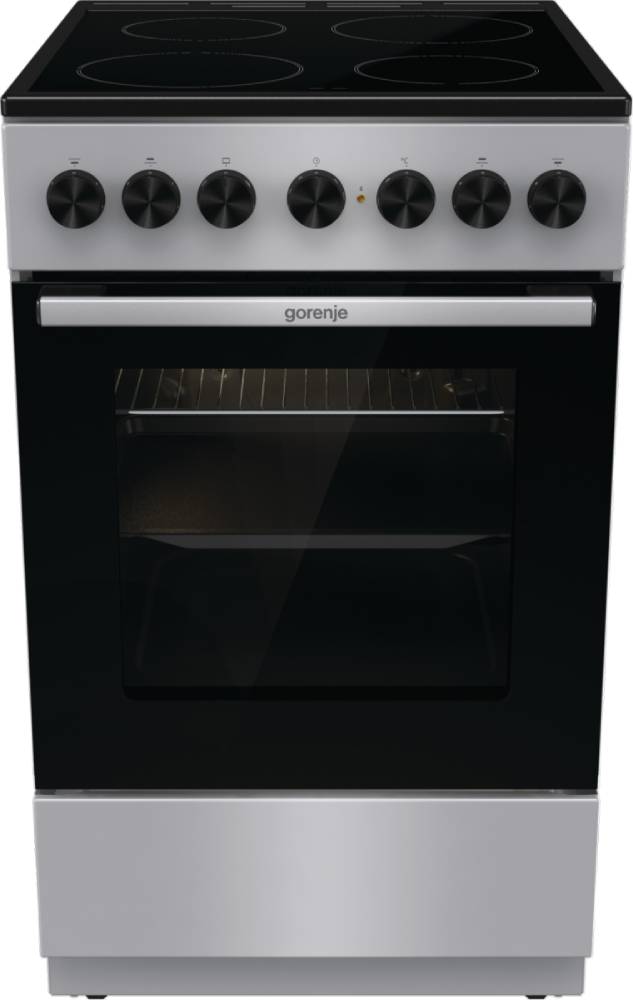 Электрическая плита Gorenje GEC5B20SG — отличный выбор как для квартиры, так и для частного дома. Цвет корпуса серый, он гармонично сочетается с мебелью и техникой похожих оттенков, а также может интересно выглядеть на контрасте с ними. Для управления используется удобная и понятная механическая система. Благодаря ей выбирать режимы приготовления и настраивать параметры температуры очень просто. Переключатели не только выполняют техническую функцию, но и поддерживают общий дизайн; тип элементов: поворотные.