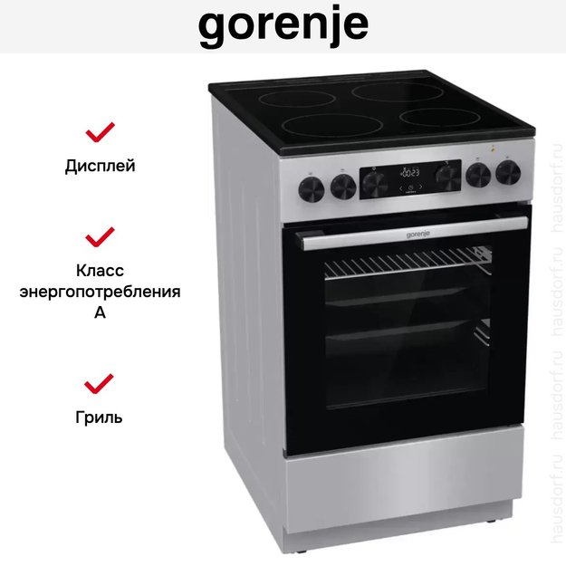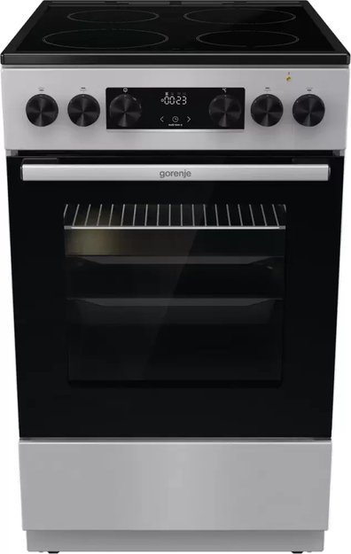 Электрическая плита Gorenje GEC5C41SG — отличный выбор как для квартиры, так и для частного дома. Цвет корпуса нержавеющая сталь, он гармонично сочетается с мебелью и техникой похожих оттенков, а также может интересно выглядеть на контрасте с ними. Для управления используется удобная и понятная электронная система. Благодаря ей выбирать режимы приготовления и настраивать параметры температуры очень просто. Основная информация о процессе отображается на дисплее. Переключатели не только выполняют техническую функцию, но и поддерживают общий дизайн; тип элементов: поворотные.