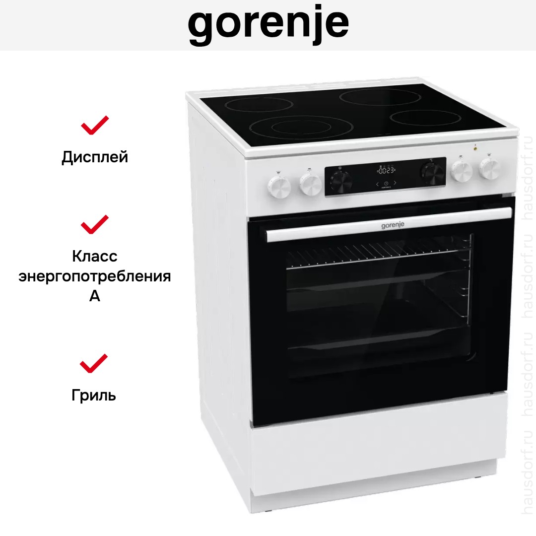 Электрическая плита Gorenje GECS6C70WC — отличный выбор как для квартиры, так и для частного дома. Цвет корпуса белый, он гармонично сочетается с мебелью и техникой похожих оттенков, а также может интересно выглядеть на контрасте с ними. Для управления используется удобная и понятная электронная система. Благодаря ей выбирать режимы приготовления и настраивать параметры температуры очень просто. Основная информация о процессе отображается на дисплее. Переключатели не только выполняют техническую функцию, но и поддерживают общий дизайн; тип элементов: поворотные.