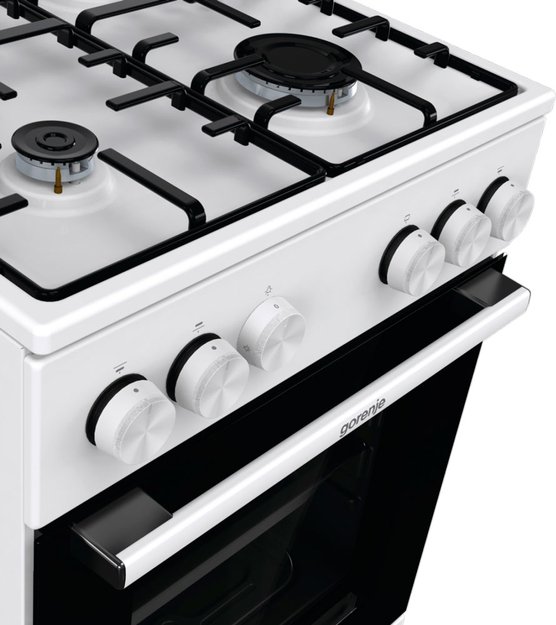 Газовая плита Gorenje GG5A10WH — отличный выбор как для квартиры, так и для частного дома. Цвет корпуса белый, он гармонично сочетается с мебелью и техникой похожих оттенков, а также может интересно выглядеть на контрасте с ними. Для управления используется удобная и понятная механическая система. Благодаря ей выбирать режимы приготовления и настраивать параметры температуры очень просто. Переключатели не только выполняют техническую функцию, но и поддерживают общий дизайн; тип элементов: поворотные.