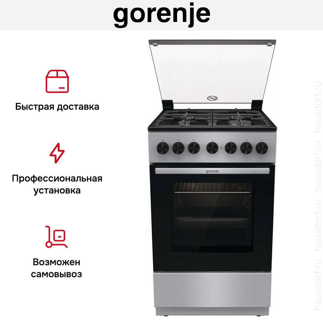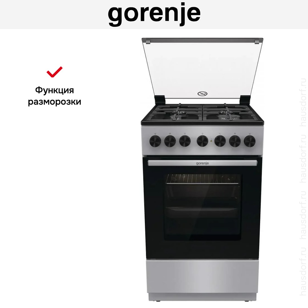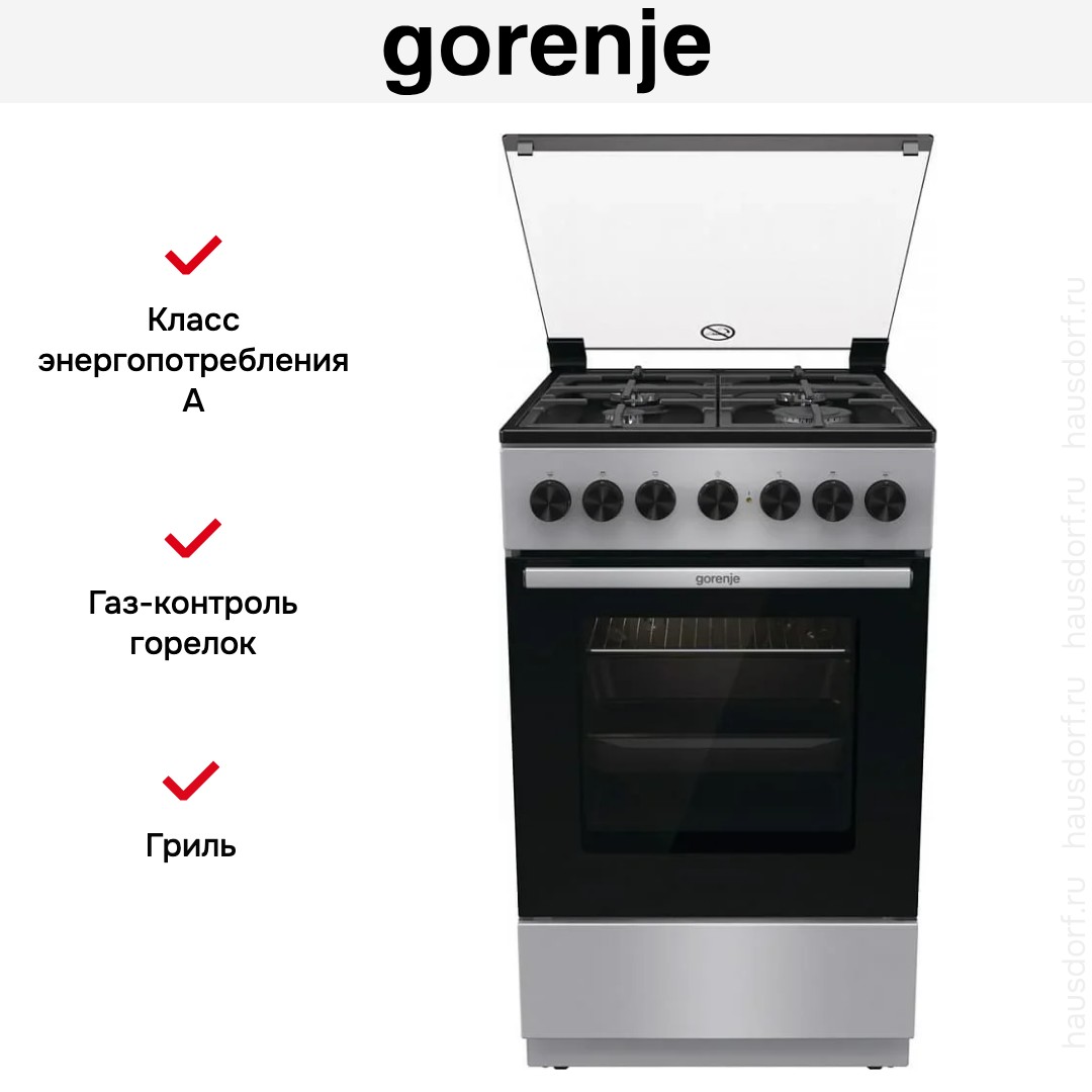 Комбинированная плита Gorenje GK5B44SF — отличный выбор как для квартиры, так и для частного дома. Цвет корпуса серебристый, он гармонично сочетается с мебелью и техникой похожих оттенков, а также может интересно выглядеть на контрасте с ними. Для управления используется удобная и понятная механическая система. Благодаря ей выбирать режимы приготовления и настраивать параметры температуры очень просто. Переключатели не только выполняют техническую функцию, но и поддерживают общий дизайн; тип элементов: поворотные.