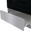 Устройства с тремя духовками также имеют один основной и две дополнительных шкафа разного объема: например, плиты Bertazzoni оснащены большой духовкой объемом 69 литров, средней объемом 54 литра и малой объемом 24 литра. Духовки располагаются в два ряда: две меньшие духовки в одном ряду, большая и ящик для посуды в другом.