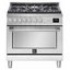 Устройства с тремя духовками также имеют один основной и две дополнительных шкафа разного объема: например, плиты Bertazzoni оснащены большой духовкой объемом 69 литров, средней объемом 54 литра и малой объемом 24 литра. Духовки располагаются в два ряда: две меньшие духовки в одном ряду, большая и ящик для посуды в другом.