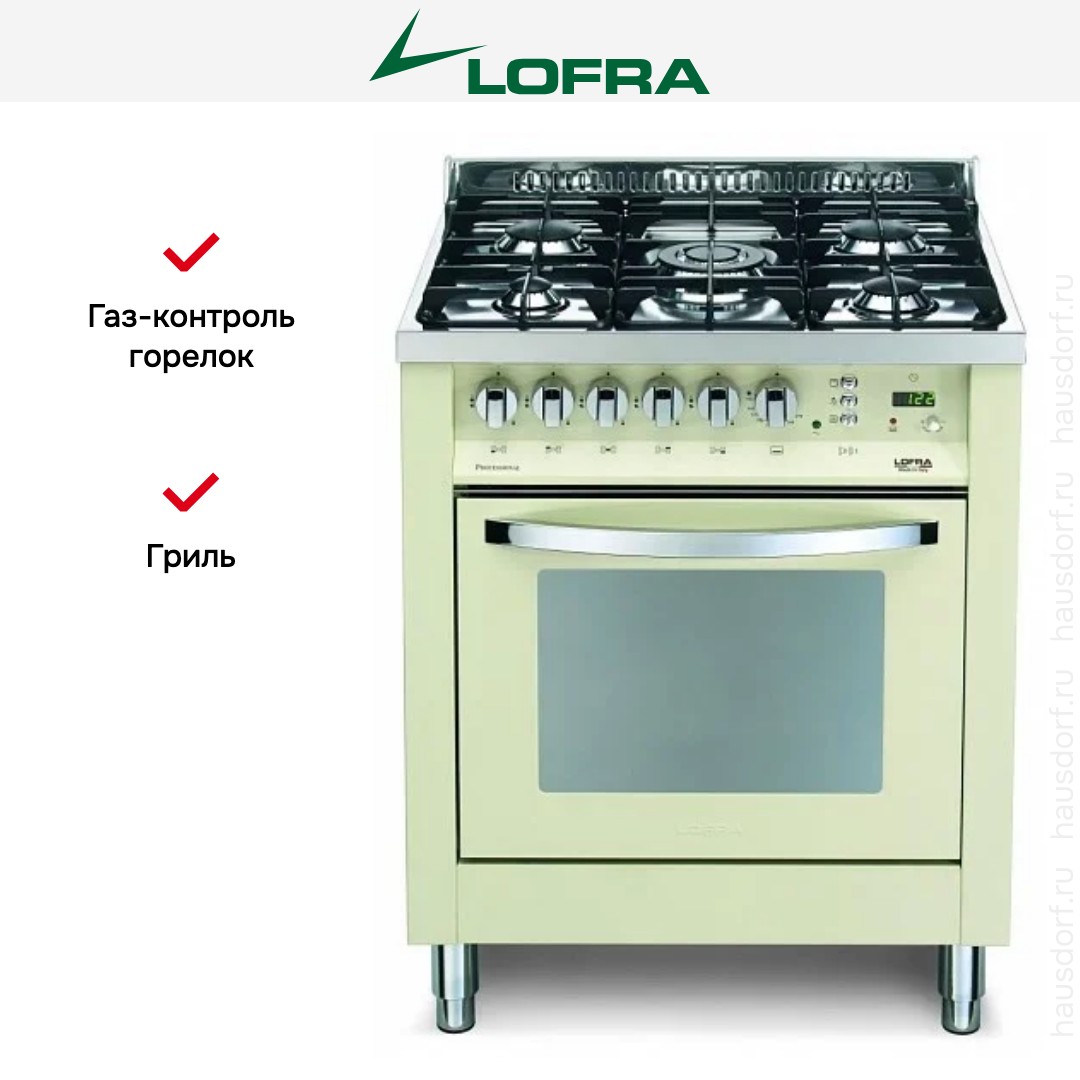 Комбинированная плита Lofra PBI76GVT/C — отличный выбор как для квартиры, так и для частного дома. Цвет корпуса бежевый, он гармонично сочетается с мебелью и техникой похожих оттенков, а также может интересно выглядеть на контрасте с ними. Для управления используется удобная и понятная механическая система. Благодаря ей выбирать режимы приготовления и настраивать параметры температуры очень просто. Переключатели не только выполняют техническую функцию, но и поддерживают общий дизайн; тип элементов: поворотные + кнопки.