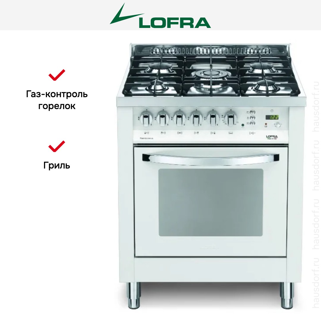 Комбинированная плита Lofra PBP76GVT/C — отличный выбор как для квартиры, так и для частного дома. Цвет корпуса белый жемчуг, он гармонично сочетается с мебелью и техникой похожих оттенков, а также может интересно выглядеть на контрасте с ними. Для управления используется удобная и понятная механическая система. Благодаря ей выбирать режимы приготовления и настраивать параметры температуры очень просто. Переключатели не только выполняют техническую функцию, но и поддерживают общий дизайн; тип элементов: поворотные + кнопки.