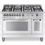Ширина варочных центров — параметр, которых варьируется в самых больших пределах. Она зависит прежде всего от характеристик модели, в частности, от количества духовок. Производители предлагают модели минимальной шириной 59-60 см с одной духовкой. В магазинах также представлены модели с одной духовкой увеличенной ширины, которая достигает 90 см. Такую же ширину могут иметь варочные центры с двумя духовками, расположенными бок о бок. Модели Lofra с тремя духовками имеют ширину 120 см, а максимальная ширина около 196-200 см отличает модели Restart с дровяной печью и несколькими духовками.