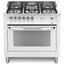 Устройства с тремя духовками также имеют один основной и две дополнительных шкафа разного объема: например, плиты Bertazzoni оснащены большой духовкой объемом 69 литров, средней объемом 54 литра и малой объемом 24 литра. Духовки располагаются в два ряда: две меньшие духовки в одном ряду, большая и ящик для посуды в другом.