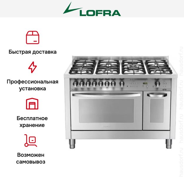Варочный центр Лофра оборудован несколькими духовками; одну из них можно использовать как основную на постоянной основе, другие как дополнительные. Тип нагрева в камере — гибридный. Большое внутреннее пространство позволяет готовить сразу несколько блюд или целиком запекать птицу, использовать объемную посуду. Вместимость составляет 136 л. Размещайте противни на разной высоте в зависимости от режима или желаемого результата. Общее количество уровней: 4. Основные функции, которые уже заложены производителем: Конвекция.