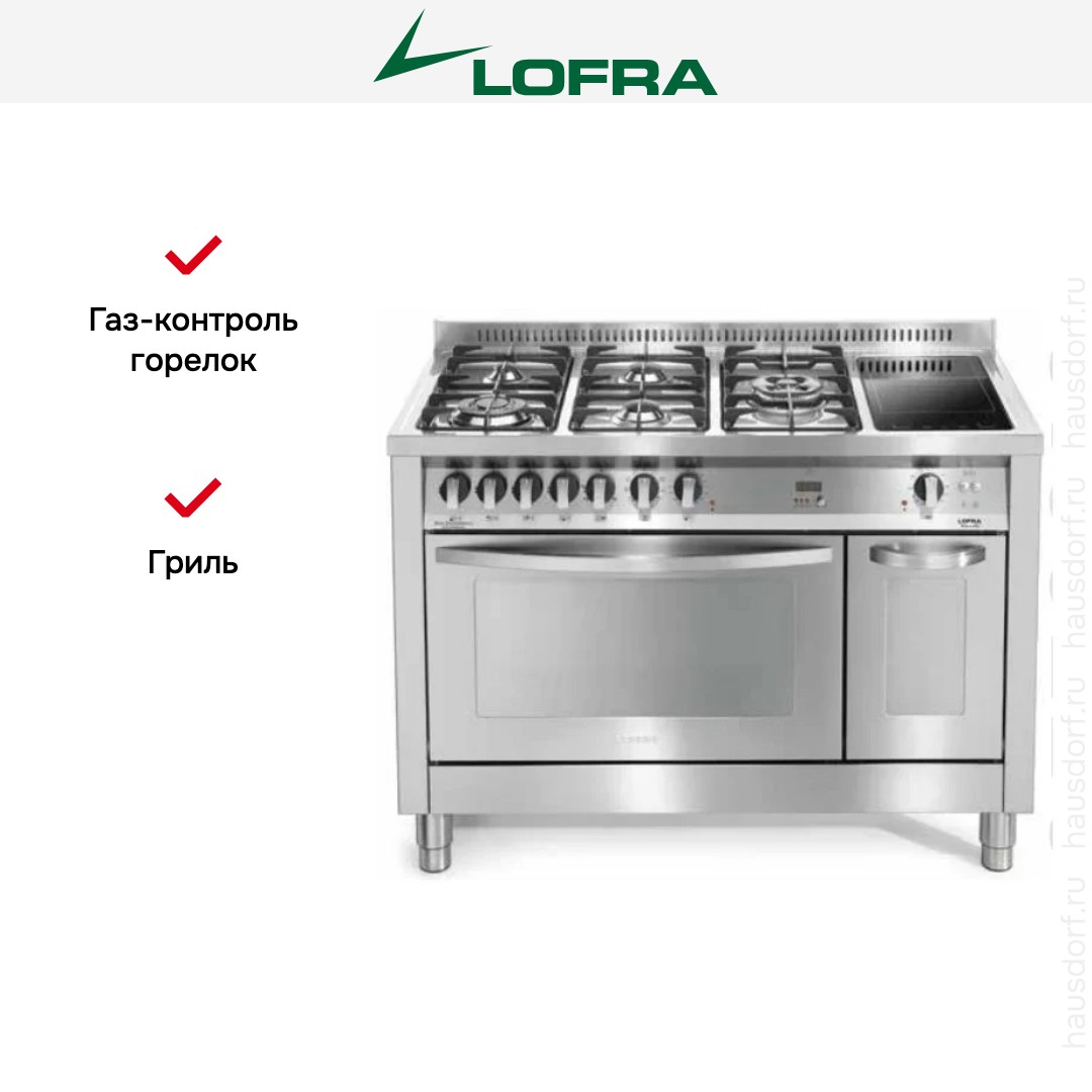 Варочный центр Лофра оборудован несколькими духовками; одну из них можно использовать как основную на постоянной основе, другие как дополнительные. Тип нагрева в камере — электрический. Вместимость составляет 136 л. Размещайте противни на разной высоте в зависимости от режима или желаемого результата.