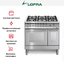Варочный центр Лофра оборудован несколькими духовками; одну из них можно использовать как основную на постоянной основе, другие как дополнительные. Тип нагрева в камере — электрический. Большое внутреннее пространство позволяет готовить сразу несколько блюд или целиком запекать птицу, использовать объемную посуду. Вместимость составляет 105.5 л. Размещайте противни на разной высоте в зависимости от режима или желаемого результата. Общее количество уровней: 4. Основные функции, которые уже заложены производителем: Верхний и нижний нагрев, Нижний нагрев, Размораживание, Конвекция, Верхний нагрев.