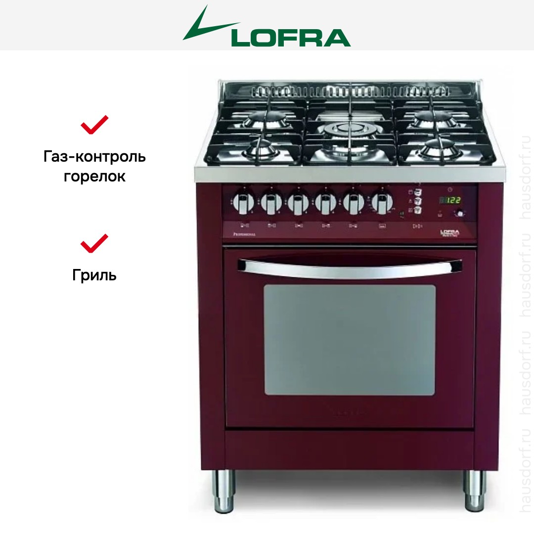 Комбинированная плита Lofra PR76GVT/C — отличный выбор как для квартиры, так и для частного дома. Цвет корпуса бордо, он гармонично сочетается с мебелью и техникой похожих оттенков, а также может интересно выглядеть на контрасте с ними. Для управления используется удобная и понятная механическая система. Благодаря ей выбирать режимы приготовления и настраивать параметры температуры очень просто. Переключатели не только выполняют техническую функцию, но и поддерживают общий дизайн; тип элементов: поворотные + кнопки.