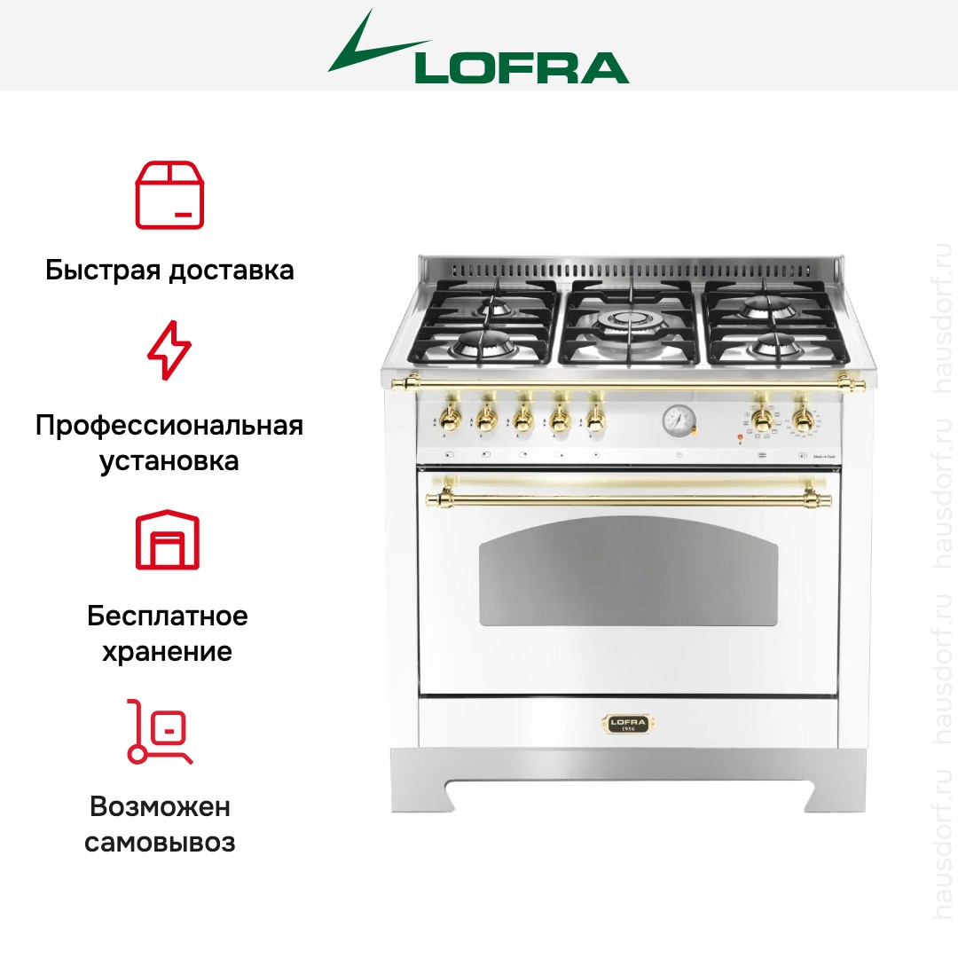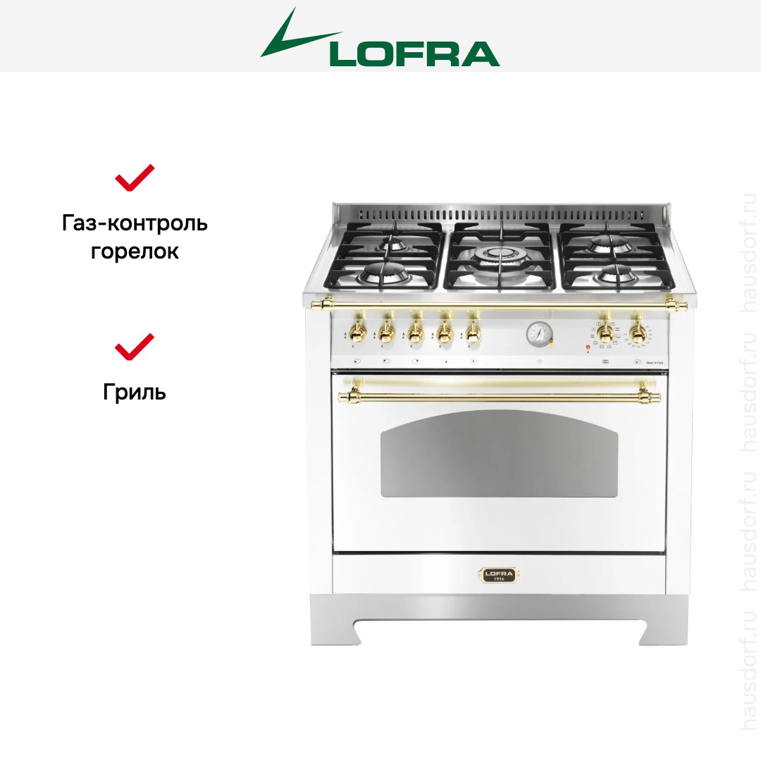 Газовая плита Lofra RBPG96MFT/Ci Brass — отличный выбор как для квартиры, так и для частного дома. Цвет корпуса белый жемчуг, он гармонично сочетается с мебелью и техникой похожих оттенков, а также может интересно выглядеть на контрасте с ними. Для управления используется удобная и понятная механическая система. Благодаря ей выбирать режимы приготовления и настраивать параметры температуры очень просто. Переключатели не только выполняют техническую функцию, но и поддерживают общий дизайн; тип элементов: поворотные.