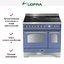 Устройства с тремя духовками также имеют один основной и две дополнительных шкафа разного объема: например, плиты Bertazzoni оснащены большой духовкой объемом 69 литров, средней объемом 54 литра и малой объемом 24 литра. Духовки располагаются в два ряда: две меньшие духовки в одном ряду, большая и ящик для посуды в другом.