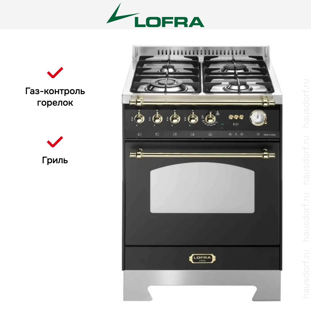 Газовая плита Lofra RNM66GVGT/Ci Brass — отличный выбор как для квартиры, так и для частного дома. Цвет корпуса черный, он гармонично сочетается с мебелью и техникой похожих оттенков, а также может интересно выглядеть на контрасте с ними. Для управления используется удобная и понятная механическая система. Благодаря ей выбирать режимы приготовления и настраивать параметры температуры очень просто. Переключатели не только выполняют техническую функцию, но и поддерживают общий дизайн; тип элементов: поворотные.