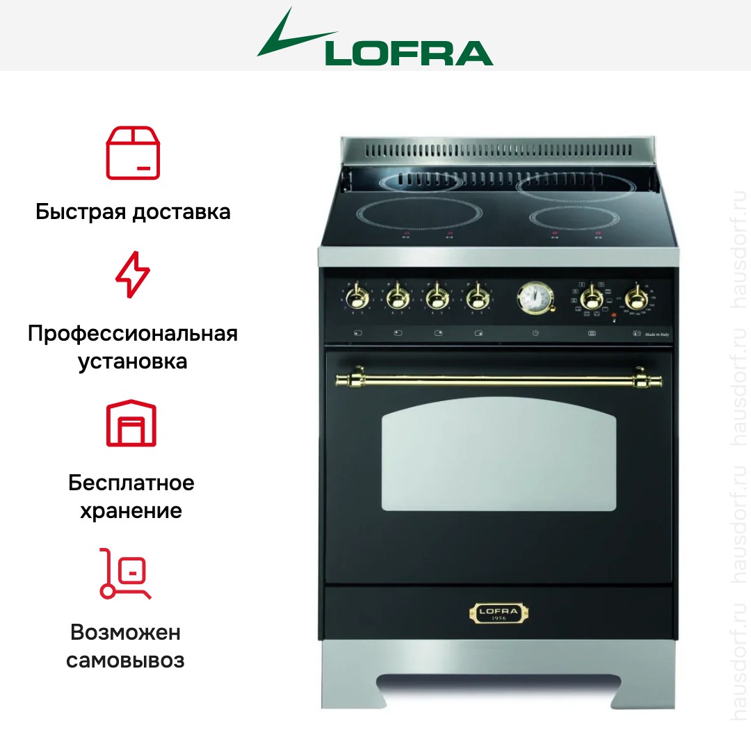Электрическая плита Lofra RNM66MFT/4I Brass — отличный выбор как для квартиры, так и для частного дома. Цвет корпуса черный, он гармонично сочетается с мебелью и техникой похожих оттенков, а также может интересно выглядеть на контрасте с ними. Для управления используется удобная и понятная механическая система. Благодаря ей выбирать режимы приготовления и настраивать параметры температуры очень просто. Переключатели не только выполняют техническую функцию, но и поддерживают общий дизайн; тип элементов: поворотные.