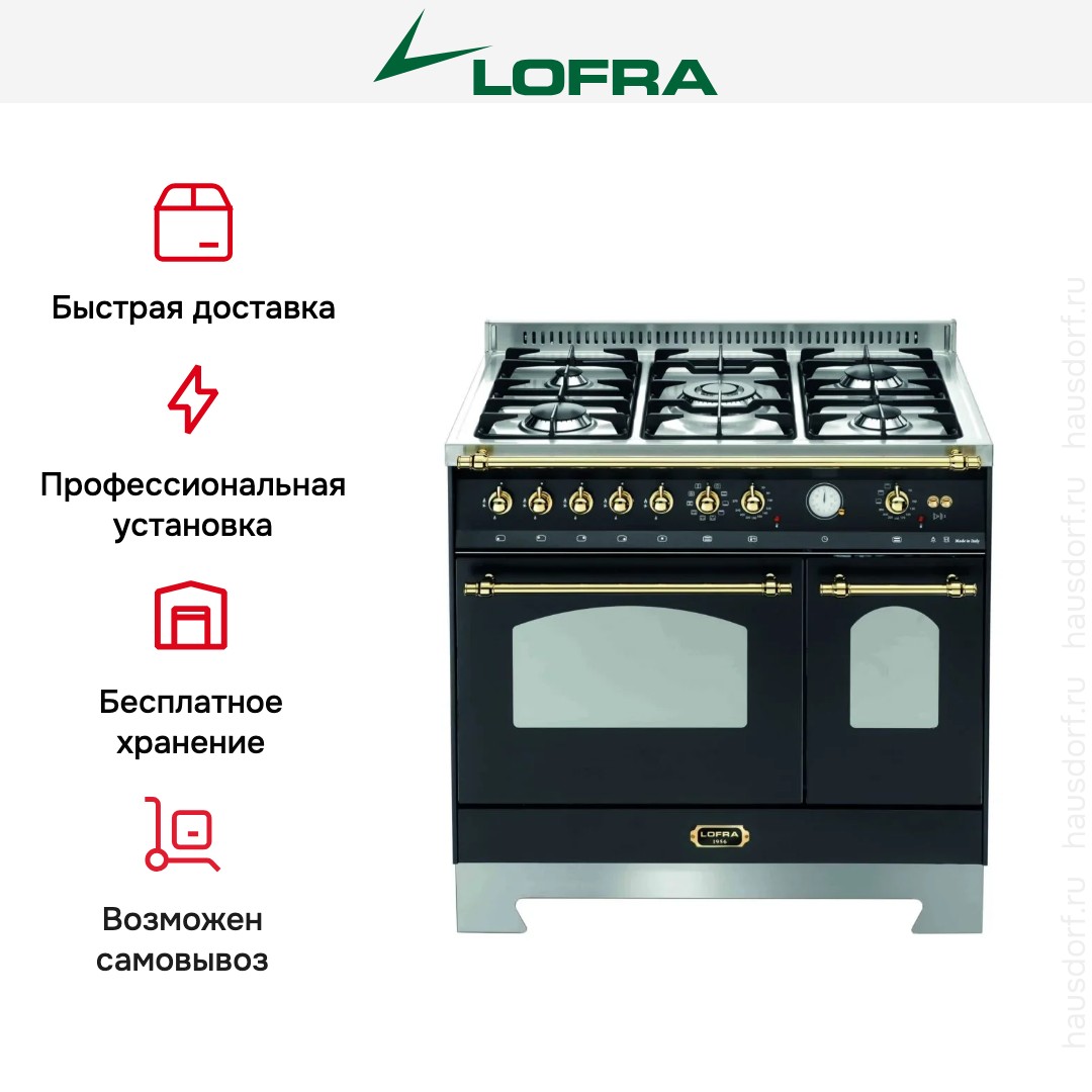 Комбинированная плита Lofra RNMD96GVGTE/Ci Brass — отличный выбор как для квартиры, так и для частного дома. Цвет корпуса черный, он гармонично сочетается с мебелью и техникой похожих оттенков, а также может интересно выглядеть на контрасте с ними. Для управления используется удобная и понятная механическая система. Благодаря ей выбирать режимы приготовления и настраивать параметры температуры очень просто. Переключатели не только выполняют техническую функцию, но и поддерживают общий дизайн; тип элементов: поворотные.