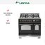 Комбинированная плита Lofra RNMD96GVGTE/Ci Bronze — отличный выбор как для квартиры, так и для частного дома. Цвет корпуса черный, он гармонично сочетается с мебелью и техникой похожих оттенков, а также может интересно выглядеть на контрасте с ними. Для управления используется удобная и понятная механическая система. Благодаря ей выбирать режимы приготовления и настраивать параметры температуры очень просто. Переключатели не только выполняют техническую функцию, но и поддерживают общий дизайн; тип элементов: поворотные.