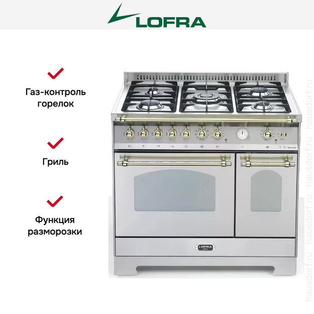 Комбинированный варочный центр Lofra подходит жителям квартир и частных домов, если есть подключение к газу. Варочная панель оборудована горелками разной мощности и диаметра, можно использовать любую посуду. Две духовки разного объема расширяют ваши кулинарные возможности. В комплекте есть вертелы, решетки и противни.