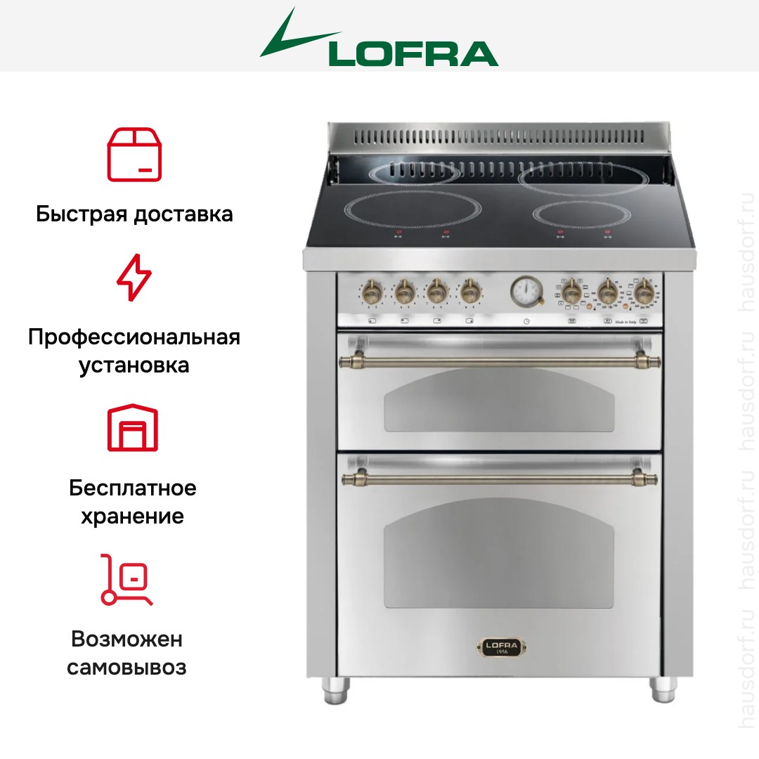 Варочный центр Лофра оборудован несколькими духовками; одну из них можно использовать как основную на постоянной основе, другие как дополнительные. Тип нагрева в камере — электрический. Размещайте противни на разной высоте в зависимости от режима или желаемого результата.
