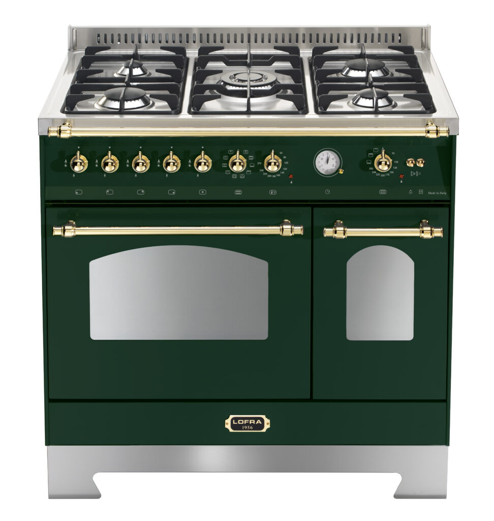 Комбинированная плита Lofra RVD96MFTE/Ci Brass — отличный выбор как для квартиры, так и для частного дома. Цвет корпуса зеленый, он гармонично сочетается с мебелью и техникой похожих оттенков, а также может интересно выглядеть на контрасте с ними. Для управления используется удобная и понятная механическая система. Благодаря ей выбирать режимы приготовления и настраивать параметры температуры очень просто. Переключатели не только выполняют техническую функцию, но и поддерживают общий дизайн; тип элементов: поворотные.