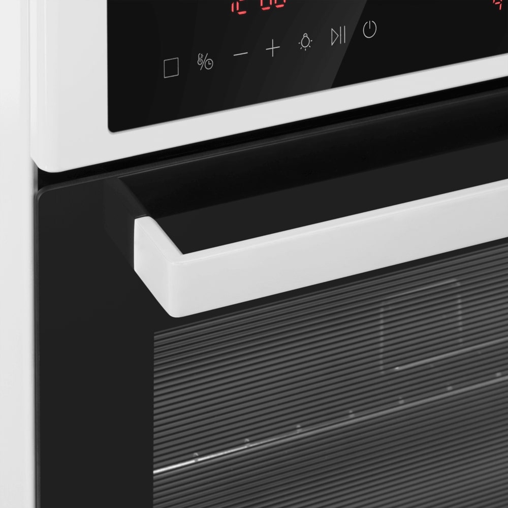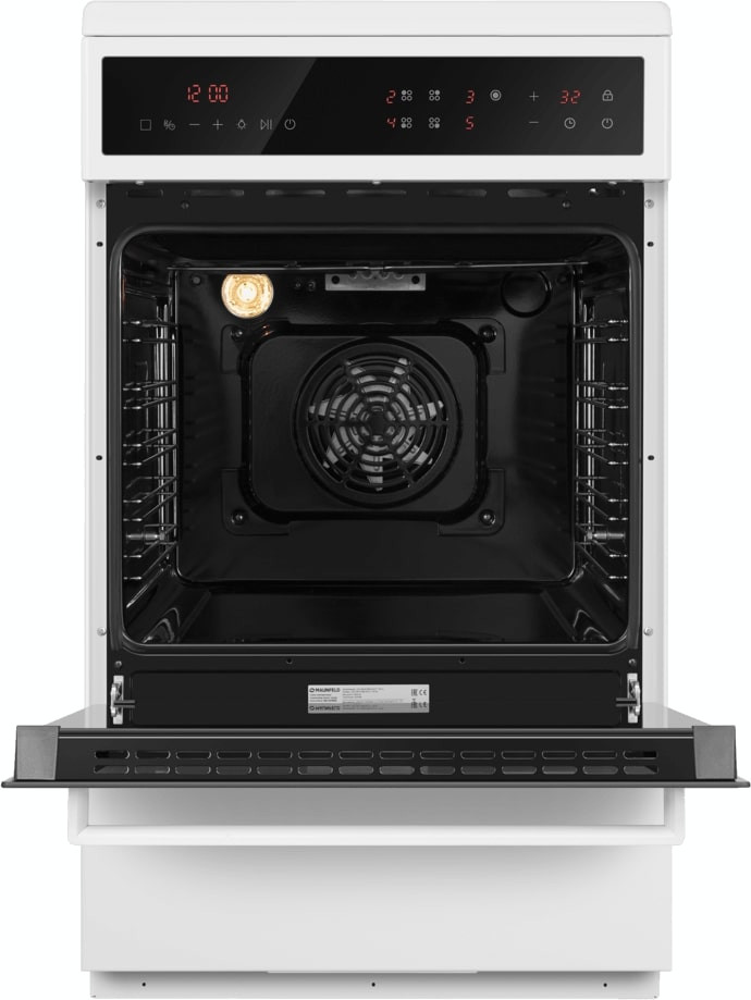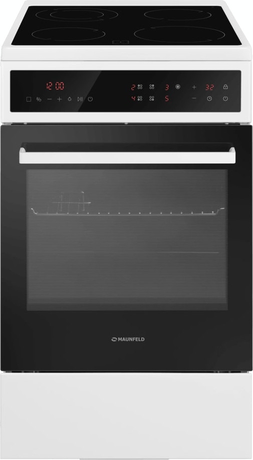 Электрическая плита Maunfeld MEC511CW10TD — отличный выбор как для квартиры, так и для частного дома. Цвет корпуса белый, он гармонично сочетается с мебелью и техникой похожих оттенков, а также может интересно выглядеть на контрасте с ними. На внутренней поверхности двери расположена таблица доступных рецептов — полезная и необычная фишка. Для управления используется удобная и понятная электронная система. Благодаря ей выбирать режимы приготовления и настраивать параметры температуры очень просто. Основная информация о процессе отображается на дисплее. Переключатели не только выполняют техническую функцию, но и поддерживают общий дизайн; тип элементов: сенсорные.