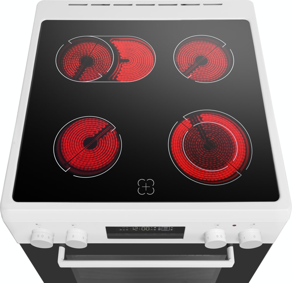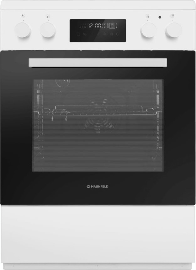 Электрическая плита Maunfeld MEC611CW09TD — отличный выбор как для квартиры, так и для частного дома. Цвет корпуса белый, он гармонично сочетается с мебелью и техникой похожих оттенков, а также может интересно выглядеть на контрасте с ними. На внутренней поверхности двери расположена таблица доступных рецептов — полезная и необычная фишка. Для управления используется удобная и понятная электронная система. Благодаря ей выбирать режимы приготовления и настраивать параметры температуры очень просто. Основная информация о процессе отображается на дисплее. Переключатели не только выполняют техническую функцию, но и поддерживают общий дизайн; тип элементов: сенсорные + поворотные.