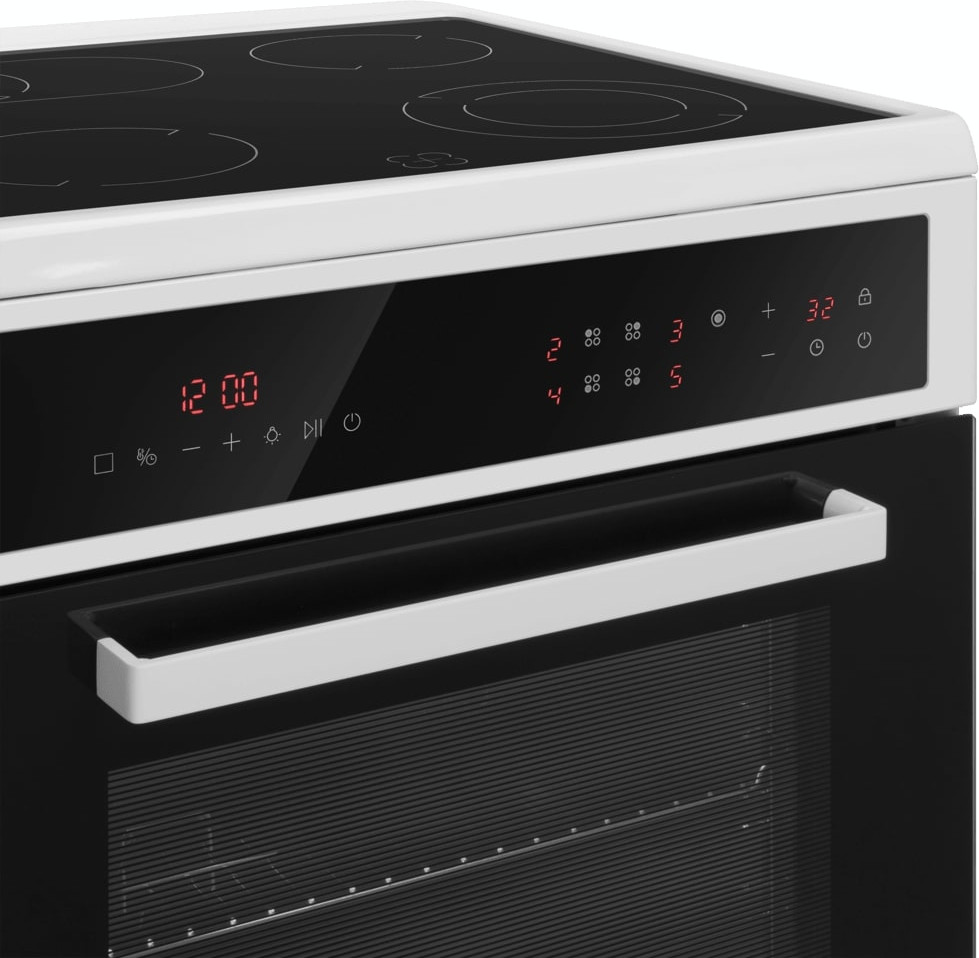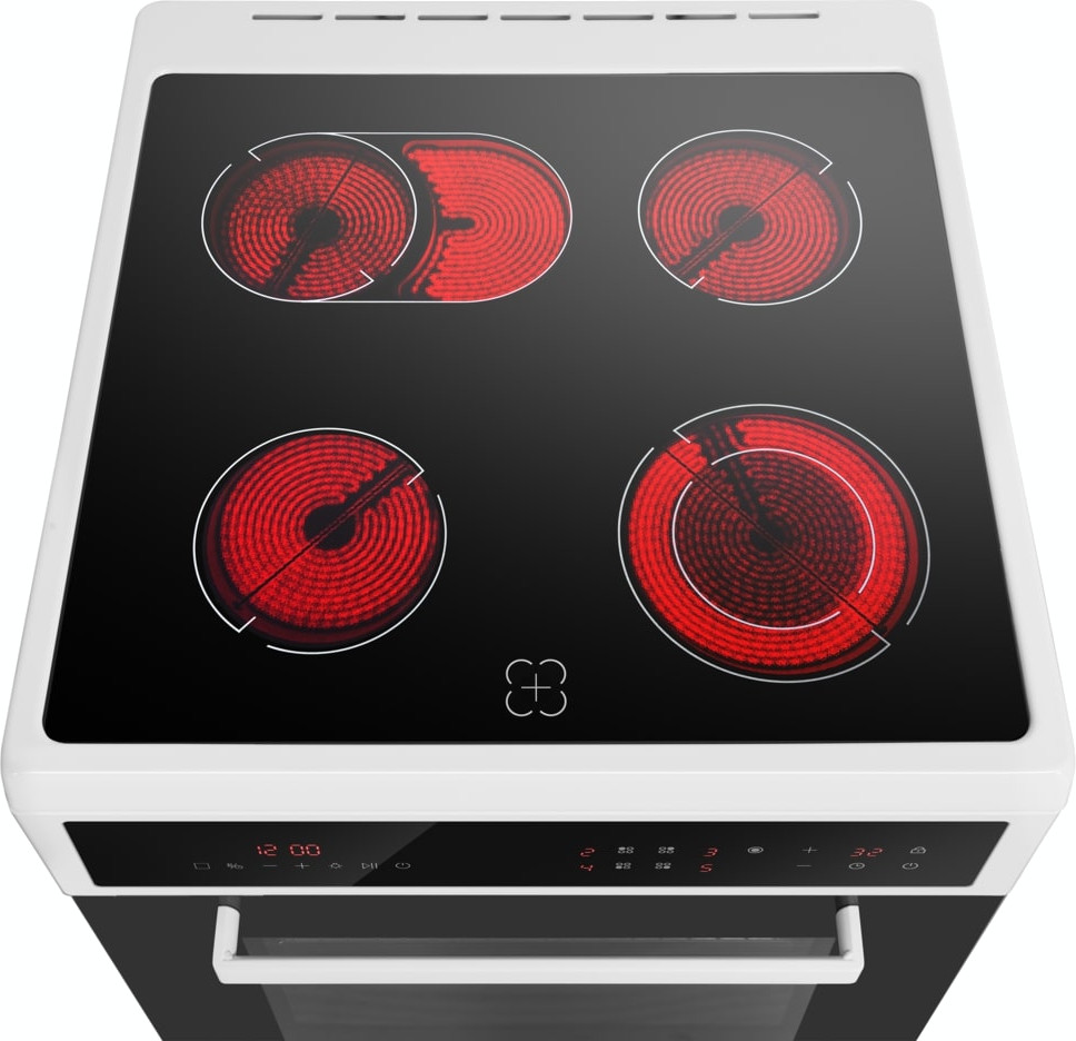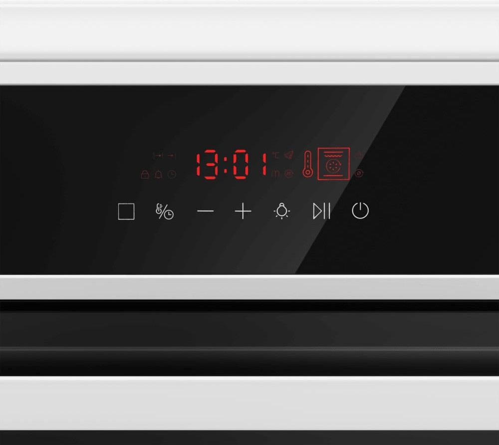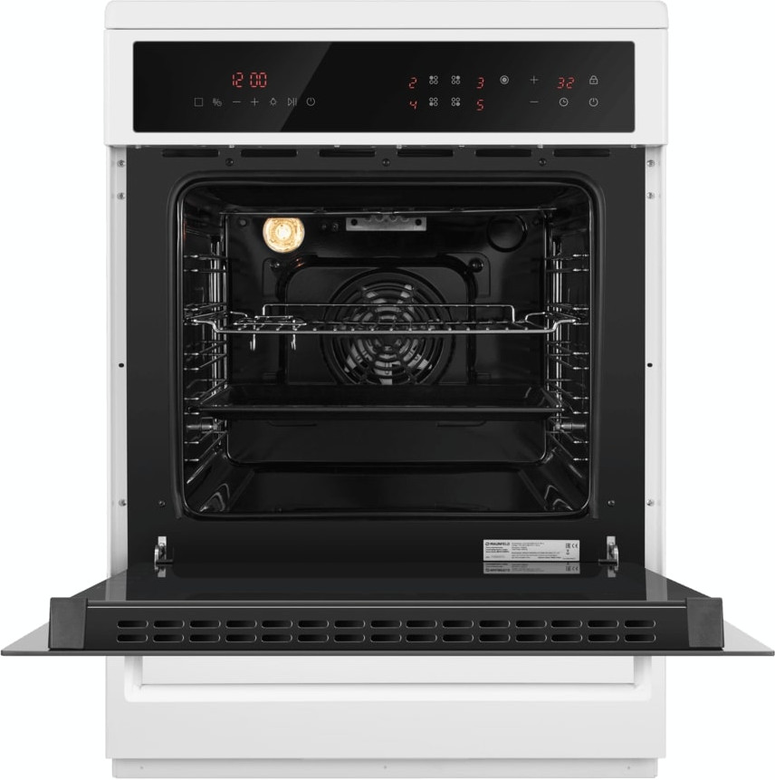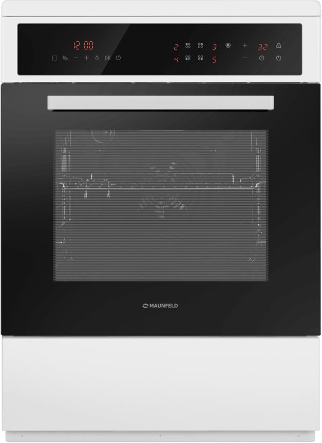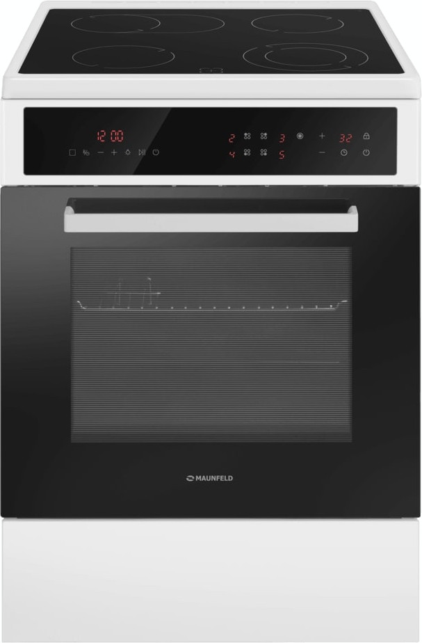 Электрическая плита Maunfeld MEC611CW10TD — отличный выбор как для квартиры, так и для частного дома. Цвет корпуса белый, он гармонично сочетается с мебелью и техникой похожих оттенков, а также может интересно выглядеть на контрасте с ними. На внутренней поверхности двери расположена таблица доступных рецептов — полезная и необычная фишка. Для управления используется удобная и понятная электронная система. Благодаря ей выбирать режимы приготовления и настраивать параметры температуры очень просто. Основная информация о процессе отображается на дисплее. Переключатели не только выполняют техническую функцию, но и поддерживают общий дизайн; тип элементов: сенсорные.