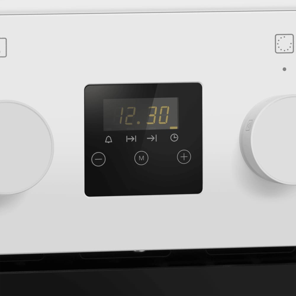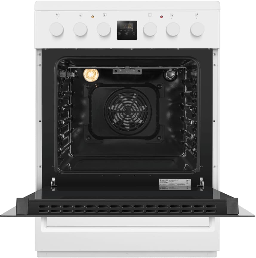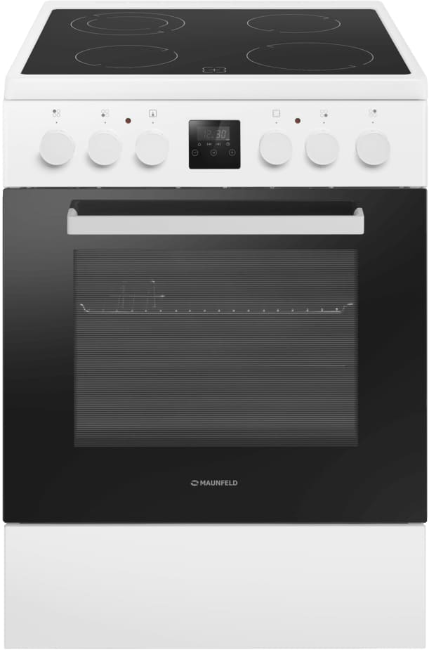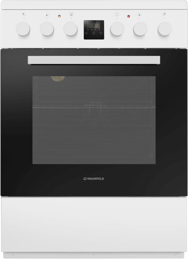 Электрическая плита Maunfeld MEC67CW08TD — отличный выбор как для квартиры, так и для частного дома. Цвет корпуса белый, он гармонично сочетается с мебелью и техникой похожих оттенков, а также может интересно выглядеть на контрасте с ними. На внутренней поверхности двери расположена таблица доступных рецептов — полезная и необычная фишка. Для управления используется удобная и понятная электронно-механическая система. Благодаря ей выбирать режимы приготовления и настраивать параметры температуры очень просто. Основная информация о процессе отображается на дисплее. Переключатели не только выполняют техническую функцию, но и поддерживают общий дизайн; тип элементов: сенсорные + поворотные.