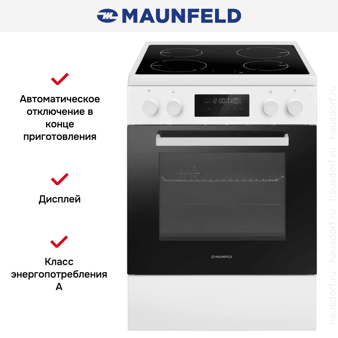 Электрическая плита Maunfeld MIC611W01TD представляет собой стильный и функциональный кухонный агрегат, созданный для тех, кто ценит аккуратный внешний вид и продуманные технологии. Корпус в классическом белом цвете гармонично впишется в любую обстановку, а стеклокерамическая варочная поверхность придает панели современное глянцевое лицо и обеспечивает простоту ухода; четыре индукционные конфорки с диаметрами 140 и 180 мм и мощностями 1.5 и 2.0 кВт снабжены 11 ступенями регулировки, индикаторами остаточного тепла и точным электронным управлением, объединённым в удобную панель с дисплеем, электронными часами и сенсорными элементами в сочетании с поворотными переключателями. Верхний электрический нагревательный элемент на 850 Вт и нижний на 1150 Вт работают совместно или автономно, а режимы включают верхний и нижний нагрев, конвекцию с вентилятором, гриль с конвекцией и большой электрический гриль мощностью 1.1 кВт, быстрый разогрев, приготовление пиццы, размораживание и сушку, что делает камеру универсальной для выпечки, запекания и сушки продуктов. Объем духовки 59 литров, пять уровней приготовления и регулировка температуры от 50 до 250 °C позволяют получить равномерный результат при работе с дрожжевым тестом и другими рецептами, а внутренняя поверхность с эмалью легкой очистки и паровая функция уборки сокращают время на уход; освещение внутри и съемное внутреннее стекло дверцы упрощают визуальный контроль. Дверца откидная с тремя стеклами и термозащитными слоями обеспечивает безопасность, хромированный ухват для противней и комплект из решетки и двух противней дополняют набор, направляющие — металлические, пять уровней по высоте, есть глубокий противень. Электрический шкаф подключается к сети 220—240/380—415 В при частоте 50 Гц, общая потребляемая мощность до 10.1 кВт, освещение — 25 Вт; прибор энергоэффективен и соответствует классу A. Для удобства предусмотрены электронный таймер с звуковым сигналом и опцией автоматического отключения по окончании готовки, защита от детей и защитное отключение при перегрузках, регулируемые ножки и полезный ящик для посуды. Габариты 84.5×60×63 см, высота 84.5 см, ширина 60 см, глубина 63 см, вес нетто около 49.76 кг, вес брутто 54.6 кг. Благодаря сочетанию продуманной эргономики, безопасности и многообразию режимов это изделие легко справится с ежедневными задачами как на семейной кухне, так и в просторной кулинарной зоне, а продуманная комплектация и простота эксплуатации делают его привлекательным выбором в сегменте варочные центры от Maunfeld.